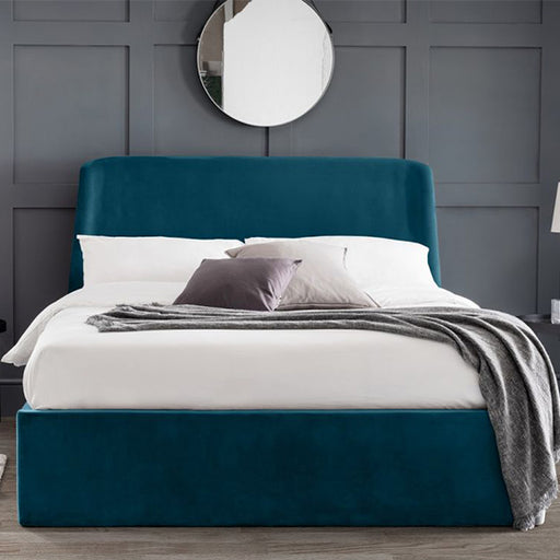 Frida Curved Velvet Storage Ottoman Double Bed In Teal