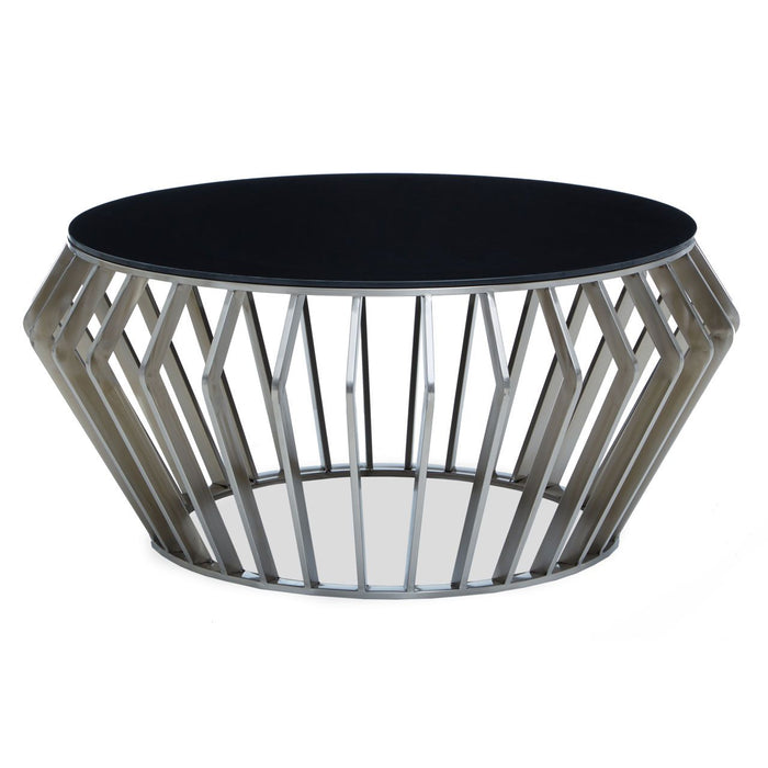 Ackley Black Glass Round Coffee Table With Silver Frame