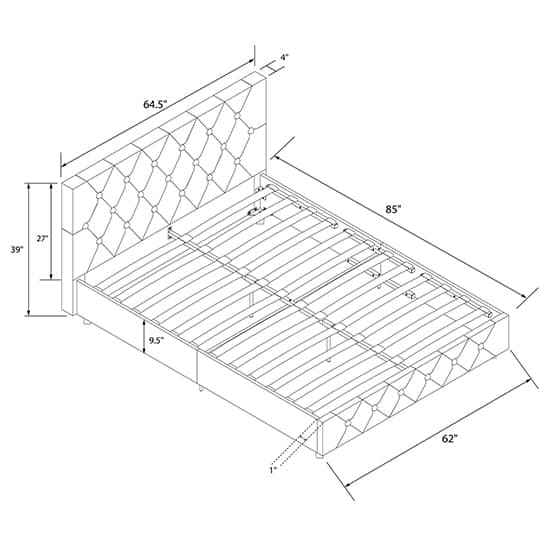 • Contemporary bed with lavish, padded faux leather upholstery and button tufted diamond detailing