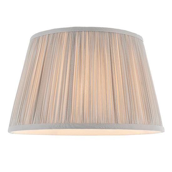 12 inch Silver silk shade. The Freya is a gorgeous collection of gathered pleat silk shades in a range of stylish classic colours.