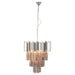 The Lustra chandelier is a traditional tier design with four tiers descending from large to small. The chandelier's top tier is created from iron and fashionably finished in cool nickel. The three smaller tiers are created from sections of bevelled glass, with a distinctive antique finish lending a weathered aesthetic.