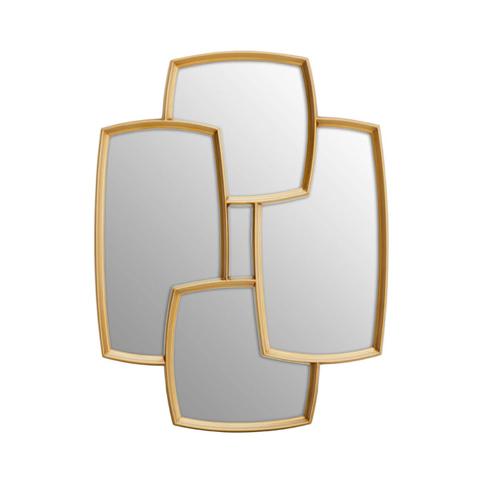 This wall mirror brings a chic accent to the interior space with its quirky design. This montage of overlapping rectangular mirrors creates an instant focal point on the wall to a range of modern and eclectic styles. The smooth gold effect frame wraps gently around each mirror and lends depth and geometric character to the living area.