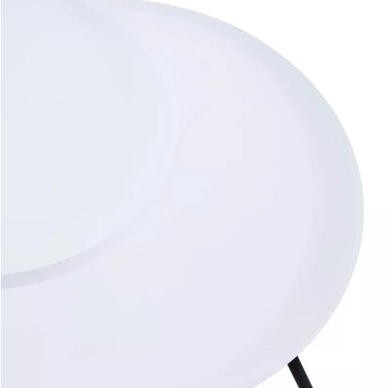 This side table features two rounded White iron trays supported by sleek, minimalist black iron legs, giving the design a contemporary look. The monochrome colour scheme and angular aesthetic add to its stylish appeal.
